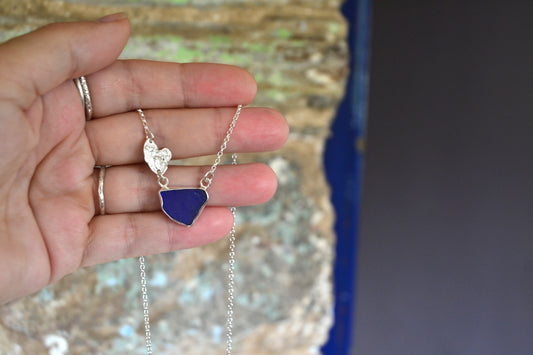 Blue Sea Glass & Molten Silver Strotha Necklace