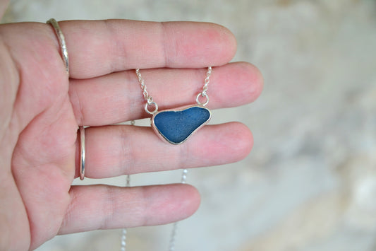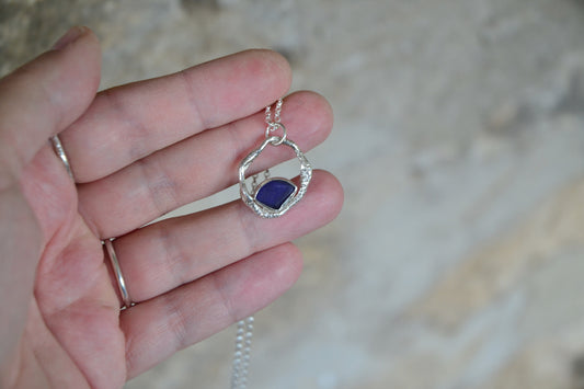 Cobalt Blue Sea Glass & Molten Silver Necklace