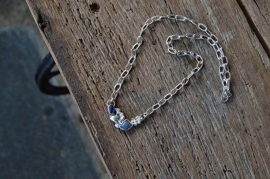 Blue Sea Glass & Molten Silver Strotha Necklace