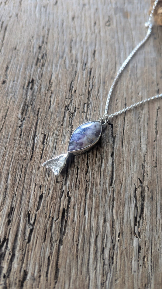 The Pysk Collection features unusual gemstones in recycled sterling silver, with tailfins created in the SeaMaid signature molten silver. Each pendant has unique character for one-of-a-kind, statement style.