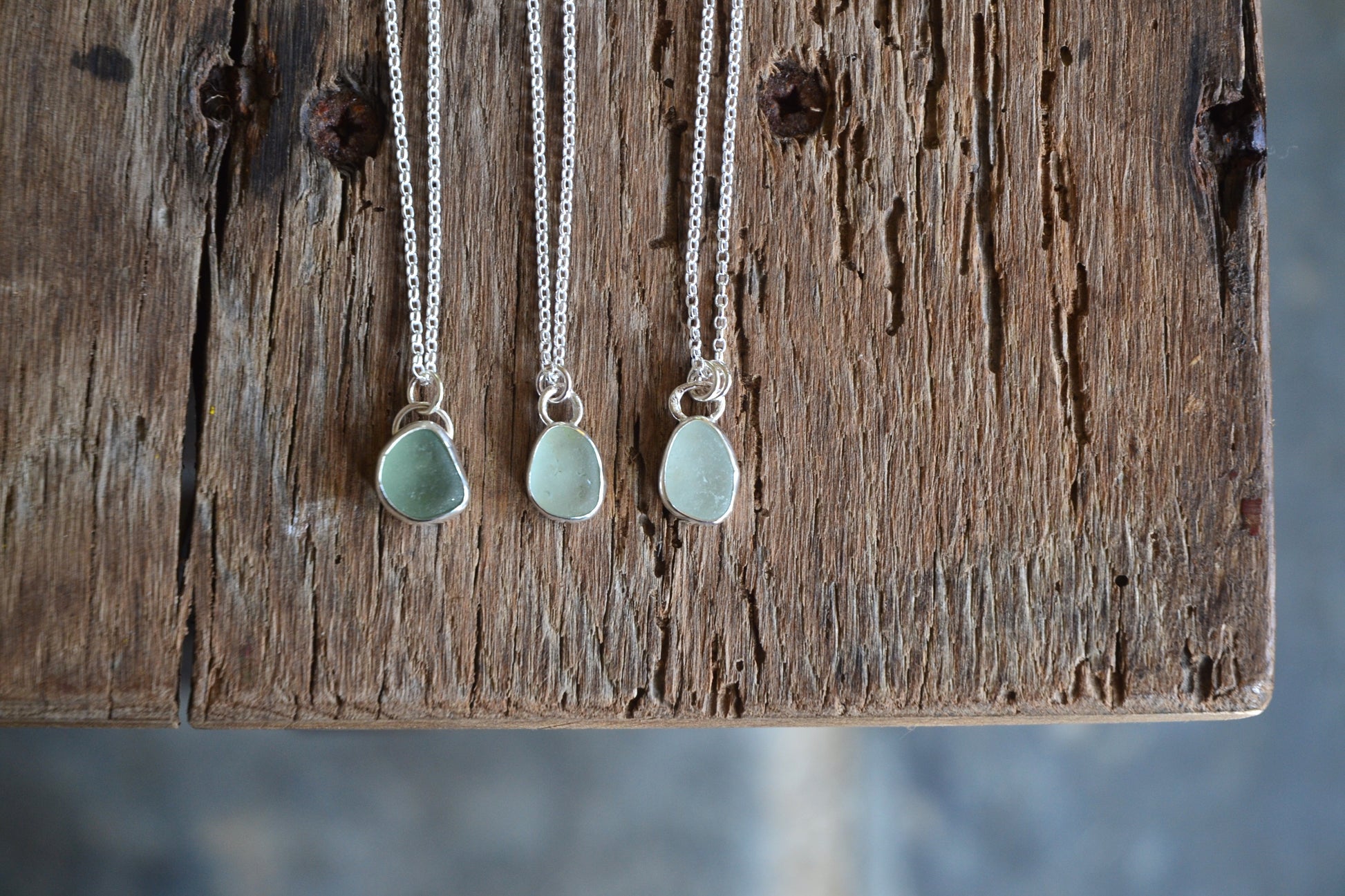 Cornish sea glass captured in recycled sterling silver. Treasures from the beaches of Cornwall, turned into necklaces that are perfect for everyday wear.