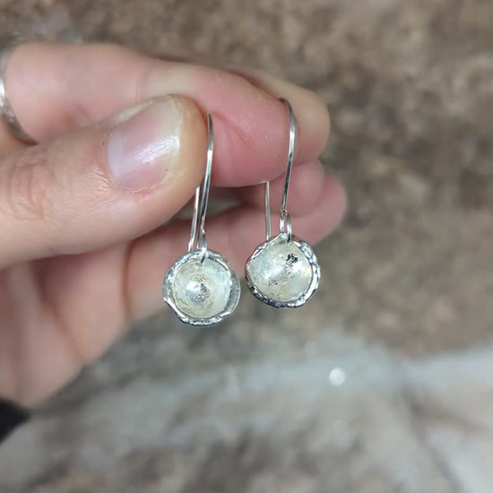 Organic molten forms captured in water. Sterling silver drop earrings.